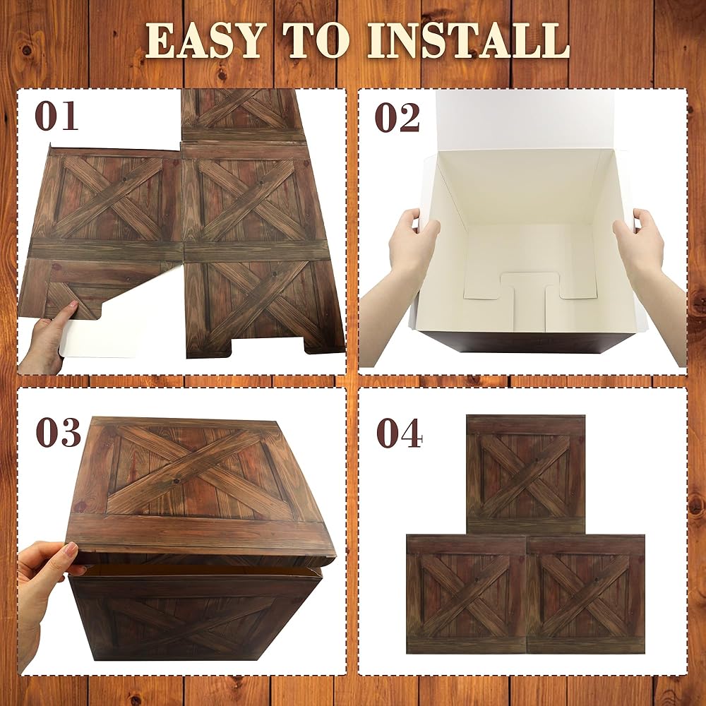 Western party decorations box features retro wood grain elements, perfectly matching cowboy and country-themed parties, creating a strong retro atmosphere and making guests feel as if they are in the Wild West.