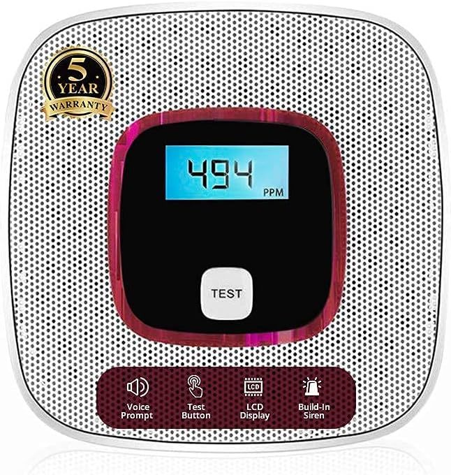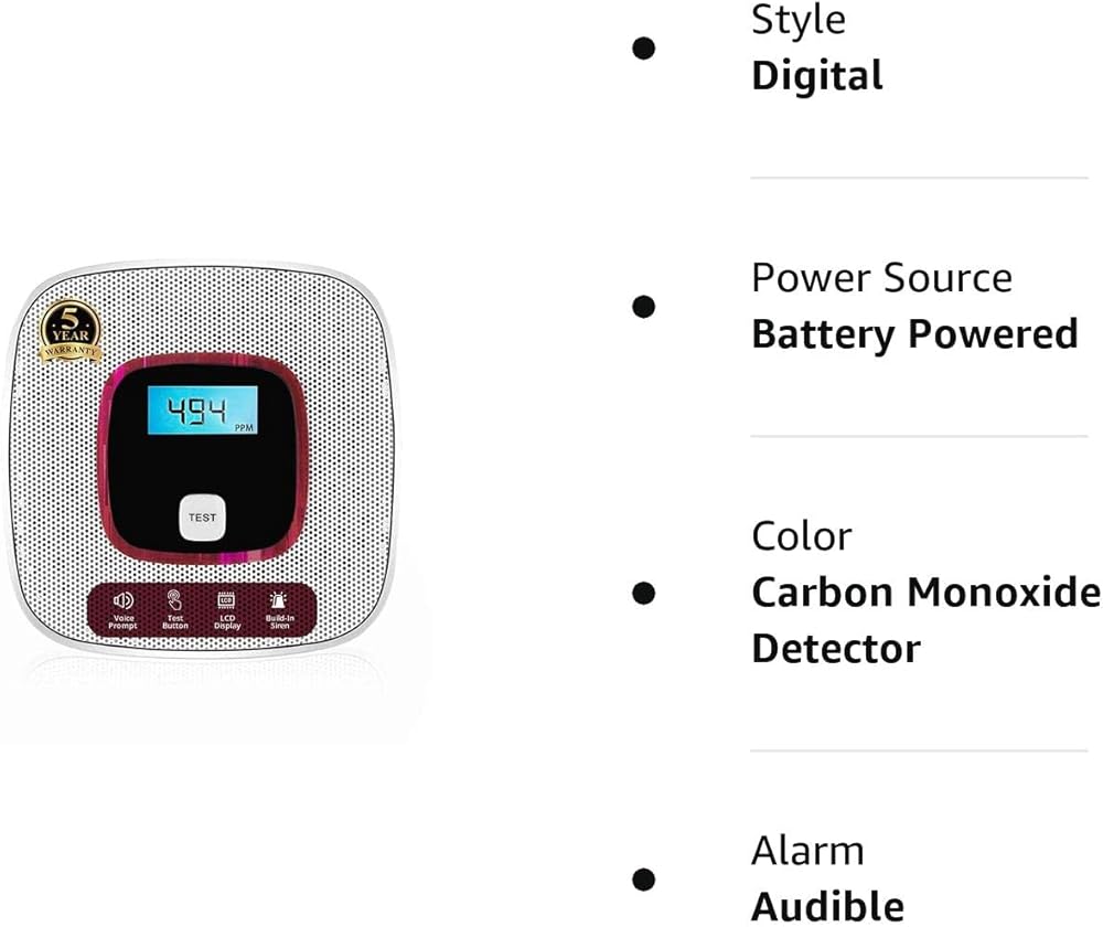 كاشف إنذار أول أكسيد الكربون - مع شاشة LCD رقمية وبطارية تحذير صوتي تعمل بالطاقة
