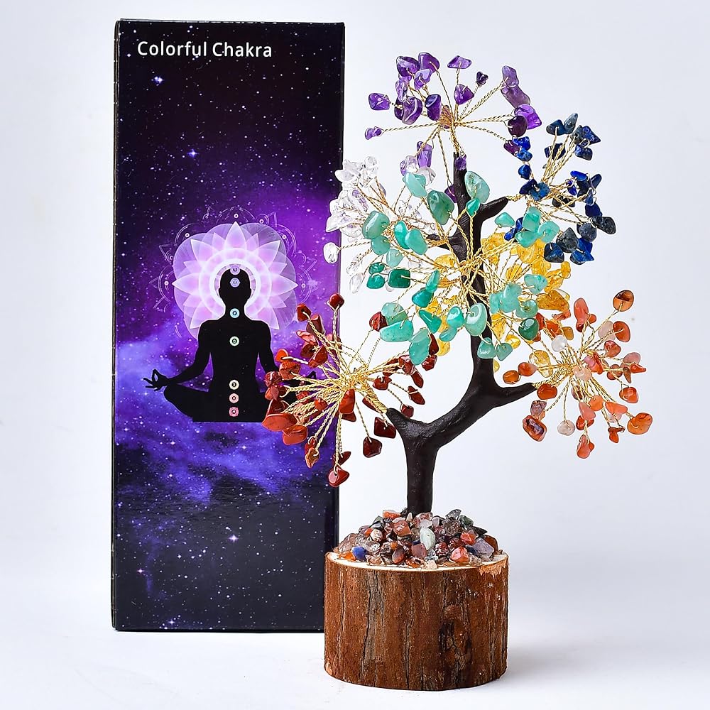 • SIZE: The Crystal Tree measures 3.9-4.7 inches in height and weighs approximately 3.9-4.6 ounces , Enhance your space with this beautiful crystal tree of life. Featuring hand-polished chakra gemstones and durable gold-tone wire on a stable agate base, it makes an eye-catching crystal accent on a desk, nightstand, or any other small place!