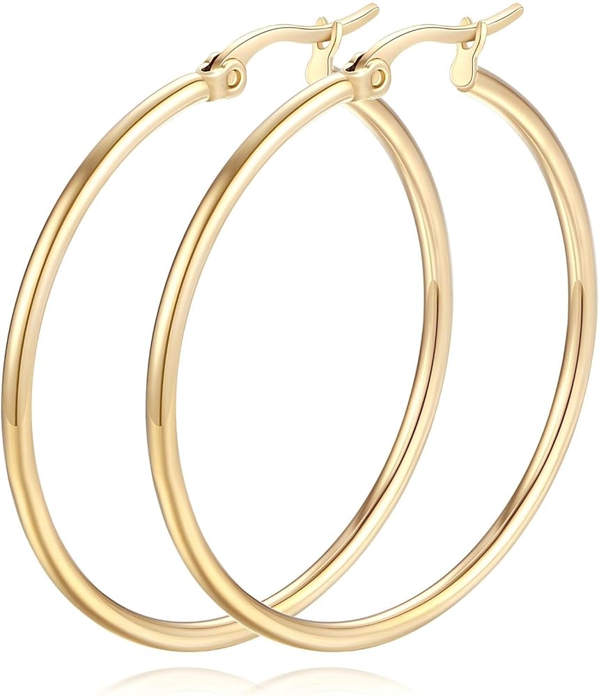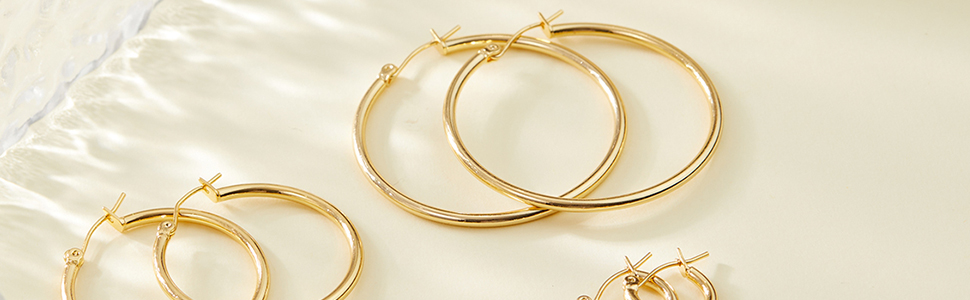 • 【Versatile Style】These large gold plated hoop earrings seamlessly adapt to any occasion, from casual daytime looks to glamorous evening events. The smaller hoops add understated elegance, while the larger hoops make a bold statement, ensuring versatility for every wardrobe