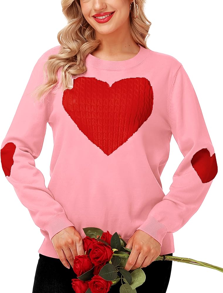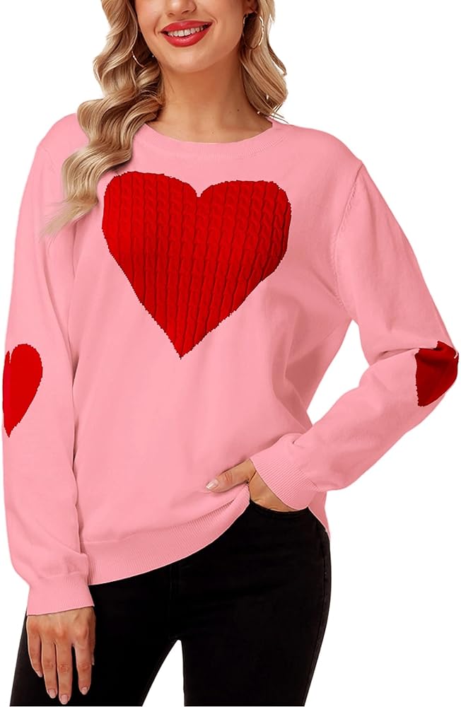 Magrank Women Cute Heart Sweater Long Sleeve Crew Neck Valentine Holiday Ribbed Knit Pullover