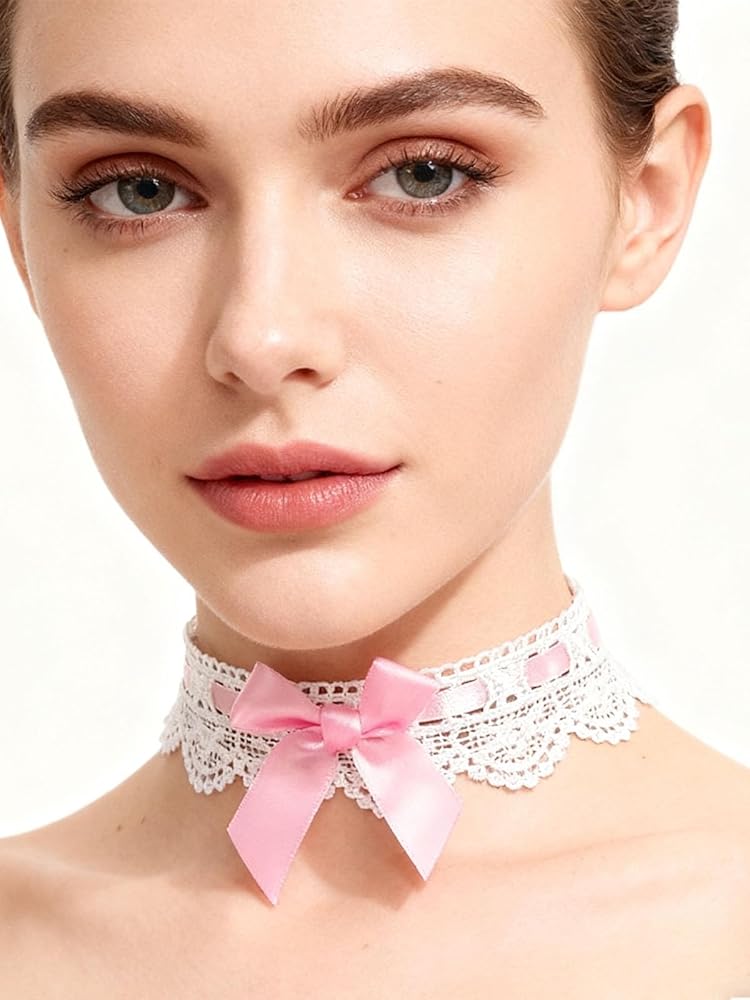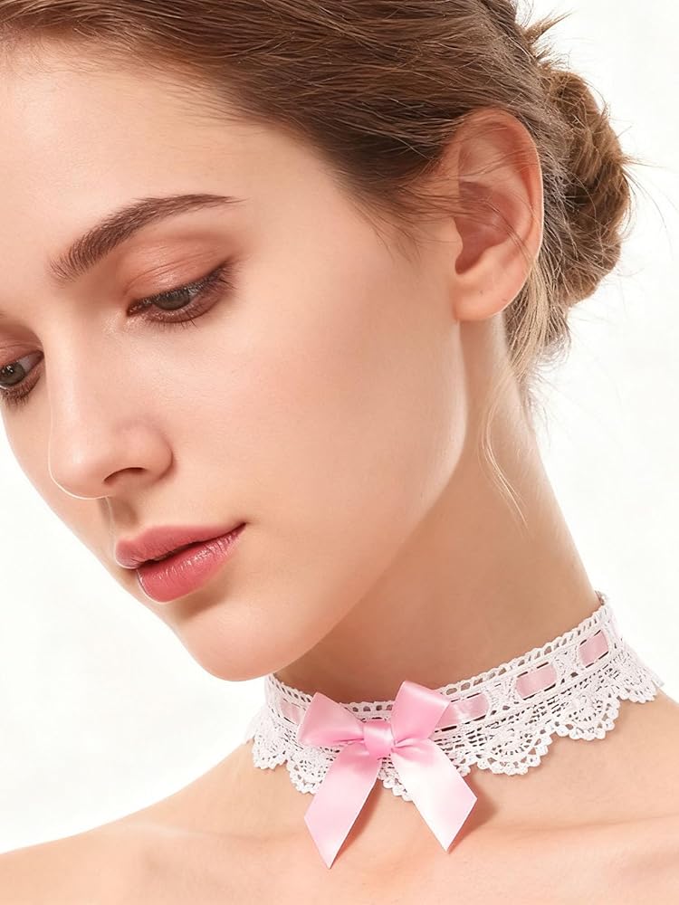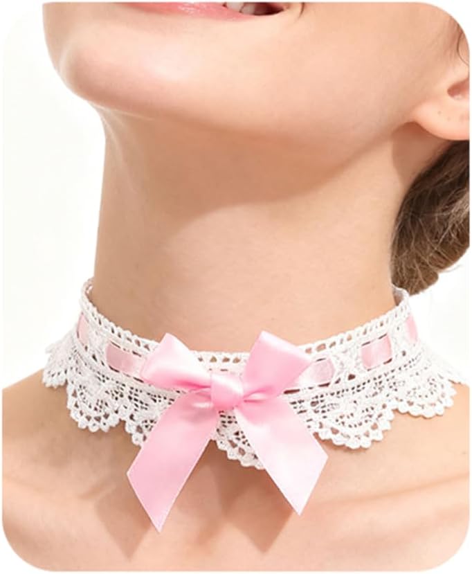 - القوس عقدة المختنق: مثير القوس عقدة المختنق قلادة خمر الدانتيل طوق لطيف الوردي لوليتا القوطية تأثيري الشريط المختنق الرقبة مجوهرات للنساء Kawaii الملحقات