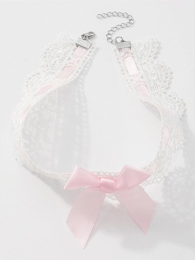 Bravace مثير القوس عقدة المختنق قلادة خمر الدانتيل طوق لطيف الوردي لوليتا القوطية تأثيري الشريط المختنق الرقبة مجوهرات للنساء Kawaii الملحقات