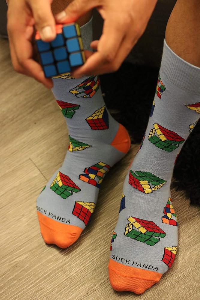 Fun Puzzle Cube Socks! You don't have to be a genius to figure out the puzzle on your socks. All you need is an appreciation for style. Great for Men, Women and Teens.