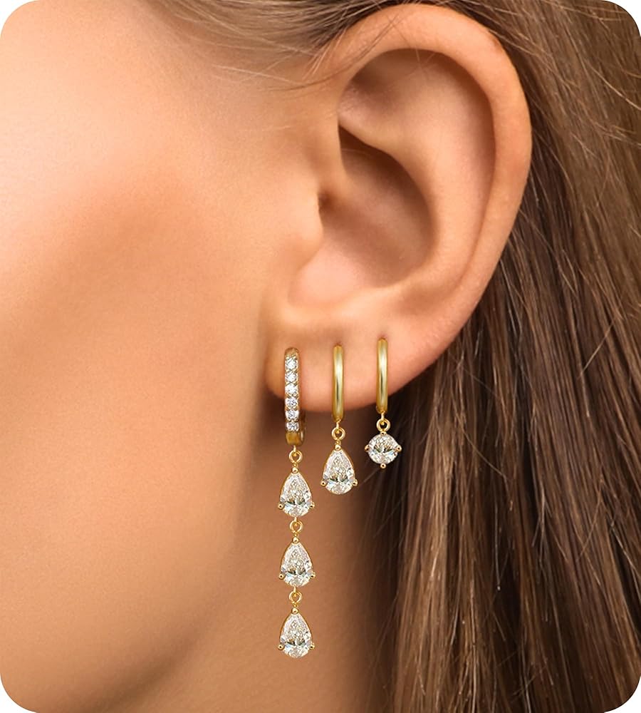 مجموعة أقراط هوجي هوب صغيرة من الفولاذ الجراحي مطلية بالذهب عيار 14 قيراط، لا تسبب الحساسية وخفيفة الوزن ومقاومة للماء وغير مشوهة، متدلية مع تشيكوسلوفاكيا للنساء - ثقب متعدد in Kuwait