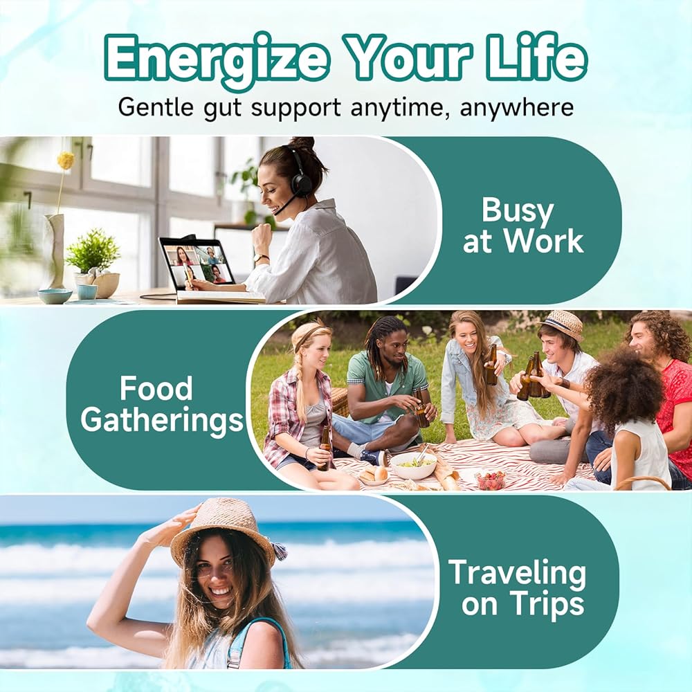 • 【كفاءة الهضم والامتصاص】مع البروتياز، الأميليز، الليباز، السليولاز، واللاكتاز لتحطيم العناصر الغذائية، وتخفيف الانزعاج بعد الوجبة، ودعم الهضم السلس. يحافظ على صحة الجهاز الهضمي للراحة في العمل أو السفر أو التجمعات.