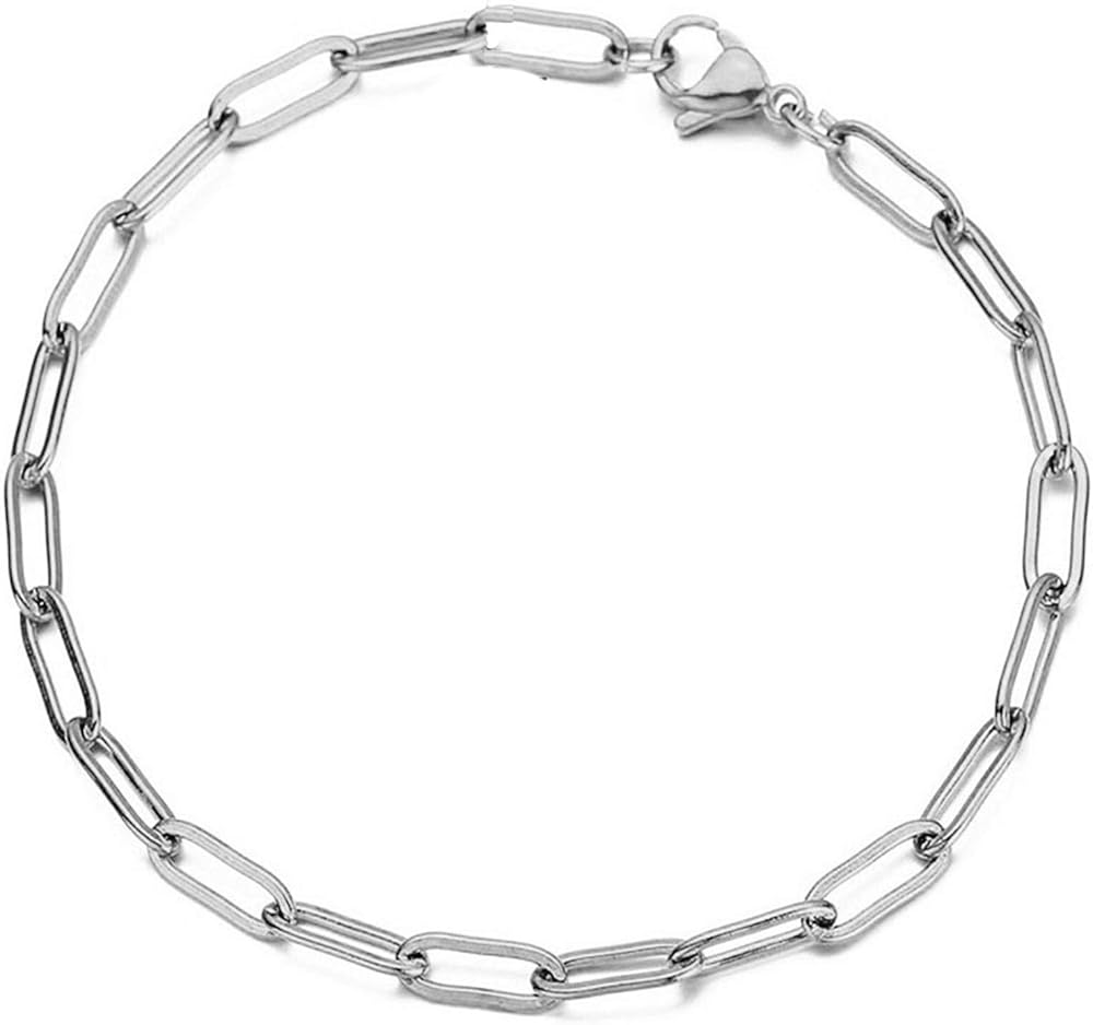 فاسق الفولاذ المقاوم للصدأ مشبك ورق سلسلة سوار الذهب الفضة اللون البيضاوي رابط لانهائي رمز بسيط الهيب البوب البيضاوي مستطيل سوار مجوهرات للنساء الفتيات-الفضة