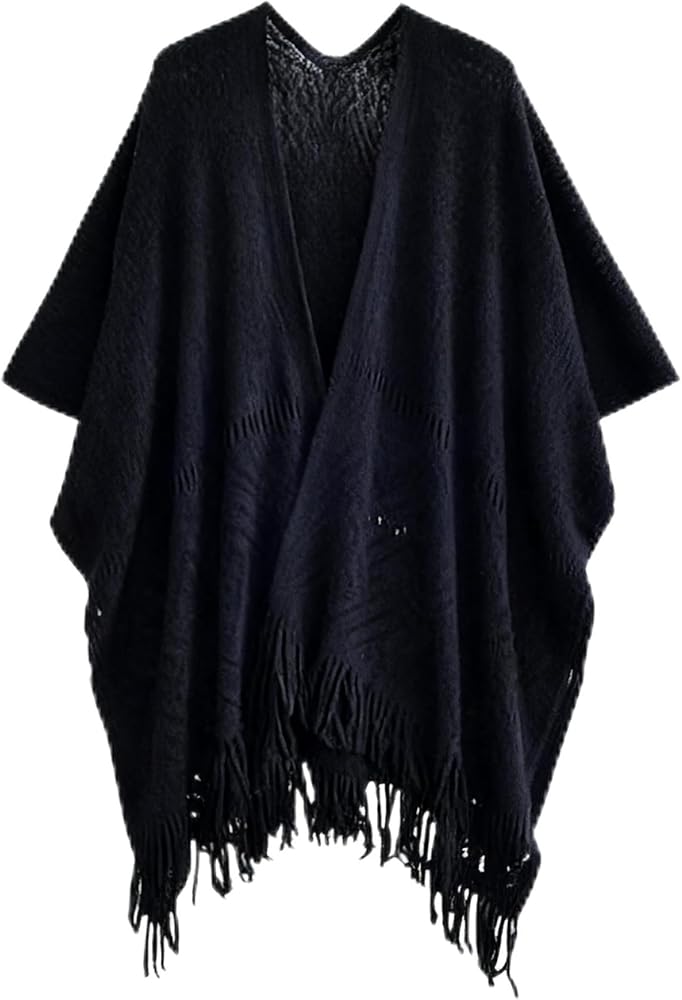 Women's Knit Shawl Wraps, Knitted Poncho Cape Open Front Cardigan Sweater with Tassel for Spring Fall Winter