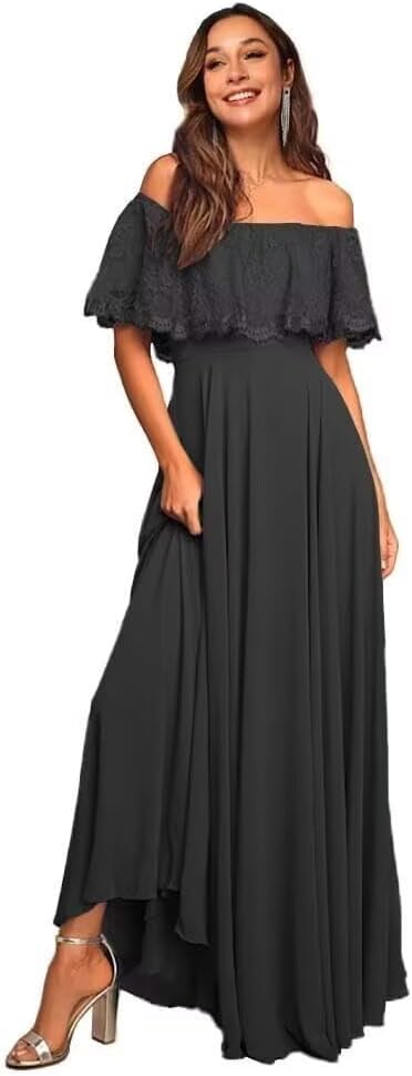 فساتين وصيفة الشرف شيفون مكشوفة الكتف للنساء 2026 دانتيل كشكشة ألف خط طويل ماكسي رسمي للحفلات المسائية in Kuwait