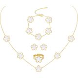 مجموعة مجوهرات من الفولاذ المقاوم للصدأ مطلية بالذهب من JIEMUCHU مكونة من أربع أوراق البرسيم وقلادة وأقراط وخاتم للنساء in Kuwait
