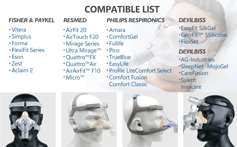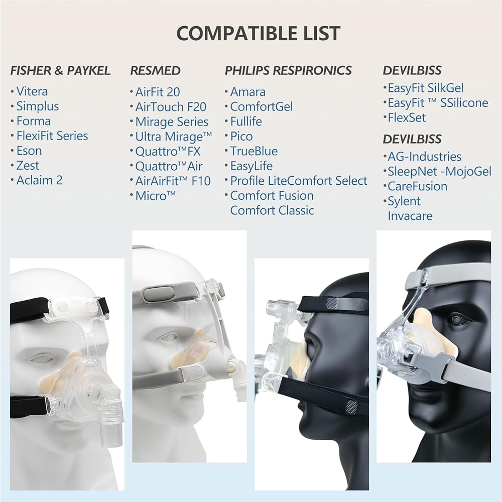 ملاءمة عالمية - تصميم فريد من نوعه يساعد على تعزيز الراحة وتقليل تسرب الهواء، مناسب لمعظم أقنعة الأنف والوجه الكامل CPAP.
