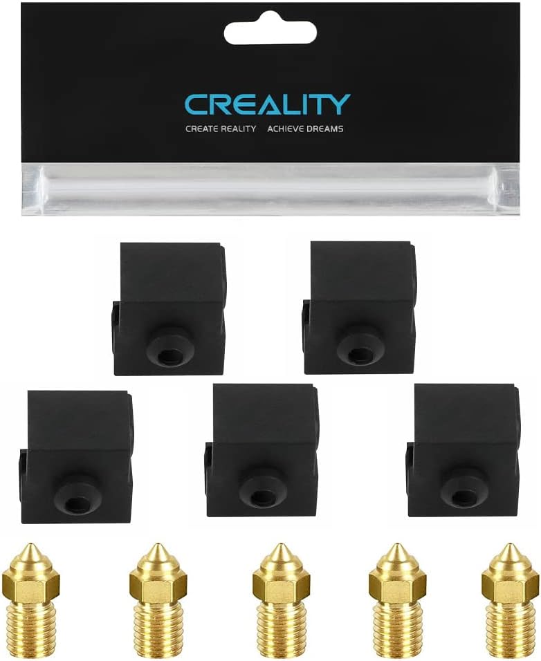 Creality Official 5 قطع Ender 5 S1 0.4 مم فوهات و5 قطع جوارب سيليكون، أجزاء طابعة ثلاثية الأبعاد غطاء سيليكون Hotend متوافق مع طابعة Creality Ender 5 S1 ثلاثية الأبعاد