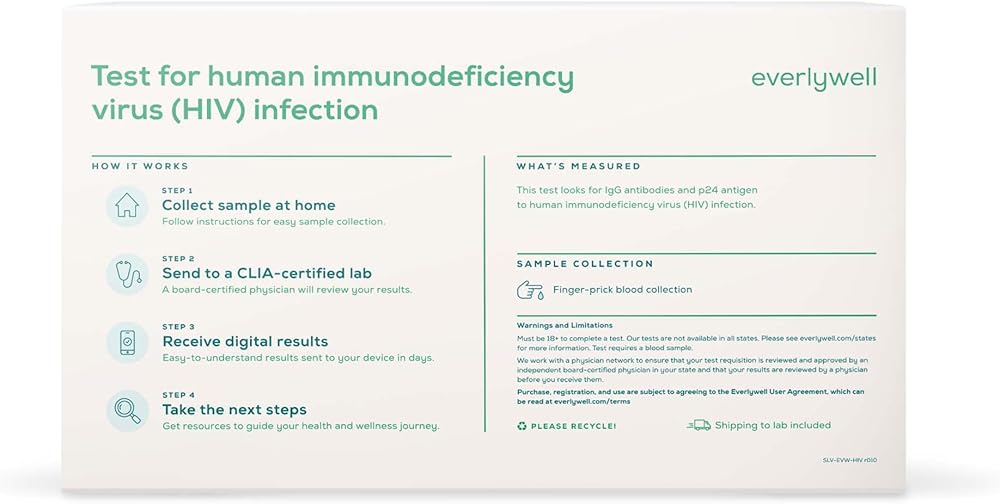اختبار EverlyWell لفيروس نقص المناعة البشرية - مجموعة أدوات التجميع في المنزل - نتائج سرية ودقيقة من مختبر معتمد من CLIA خلال أيام - للأعمار من 18 عامًا فما فوق