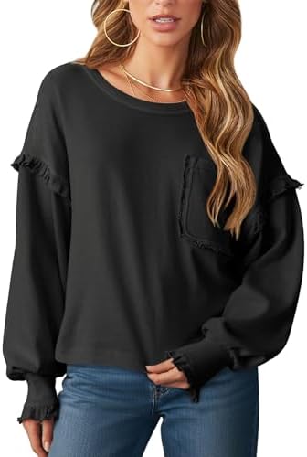 سويت شيرت نسائي من Sunborui بأكمام طويلة مكشكش ورقبة دائرية، بلوفر كاجوال لطيف كبير الحجم مع جيب  in Kuwait سويت شيرت نسائي من Sunborui بأكمام طويلة مكشكش ورقبة دائرية، بلوفر كاجوال لطيف كبير الحجم مع جيب  in Kuwait