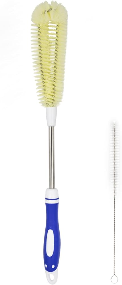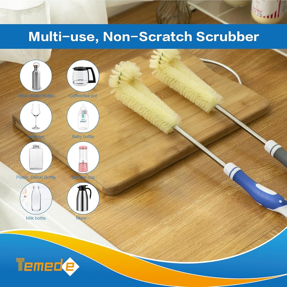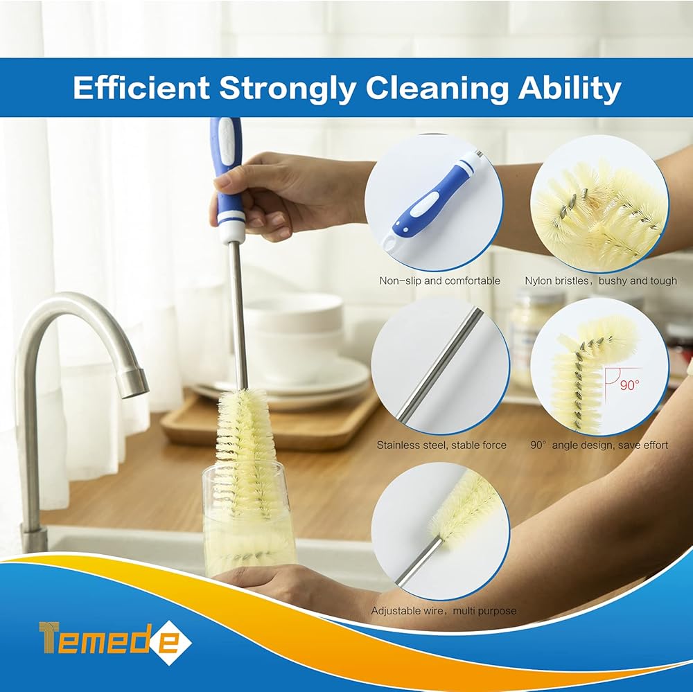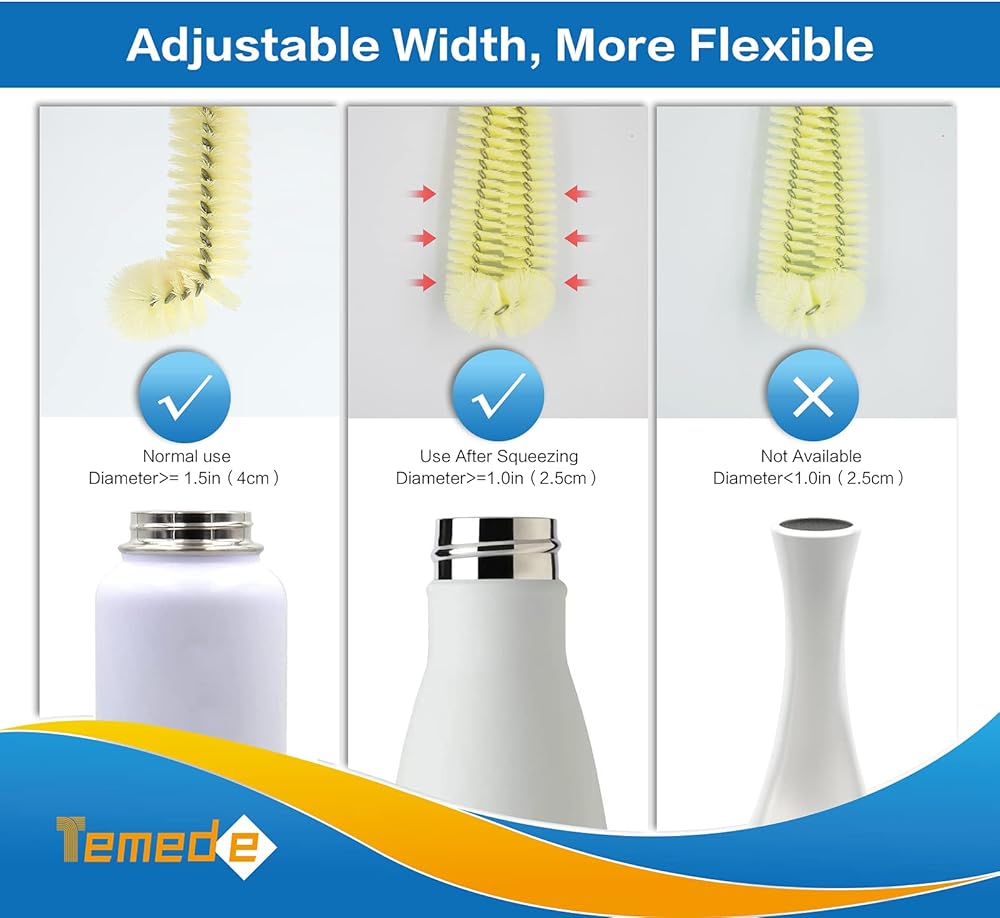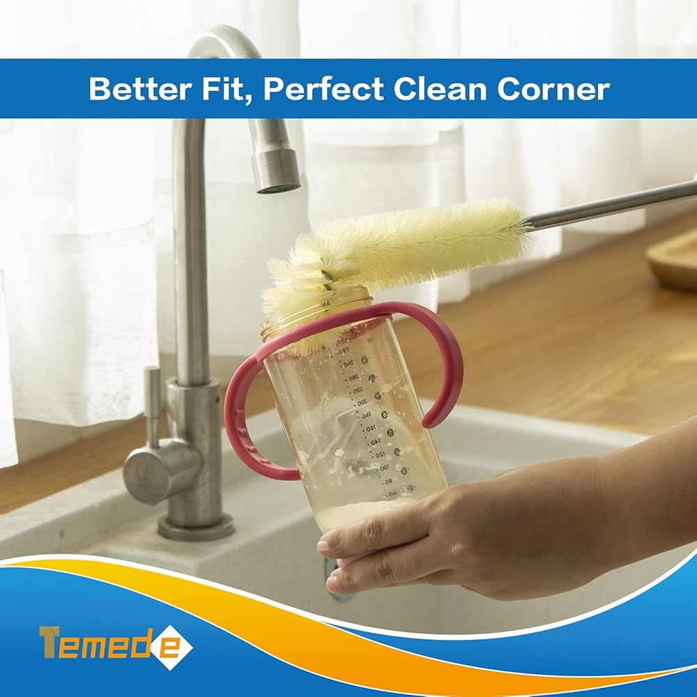 【طول مثالي】فرشاة تنظيف بمقبض طويل 16.5 سم توفر المزيد من الراحة. يمكن الوصول بسهولة إلى رأس الفرشاة القابل للتعديل مقاس 15.24 سم في الزجاجات وزجاجة الأطفال وكوب الماء وأبريق القهوة والبرطمانات الزجاجية والزجاجات الرياضية، إلخ.