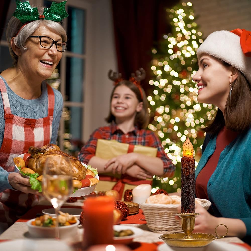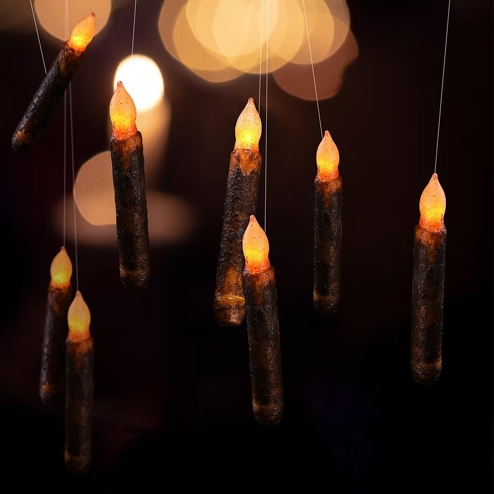 6 عبوات من Lpraer، عمود شمع حقيقي، شموع مستدقة بدائية، شموع بالتنقيط البدائية، مصابيح LED وامضة عديمة اللهب، مجموعة تزيين الهالوين تعمل بالبطارية، ديكور الكنيسة للمهرجانات، بني