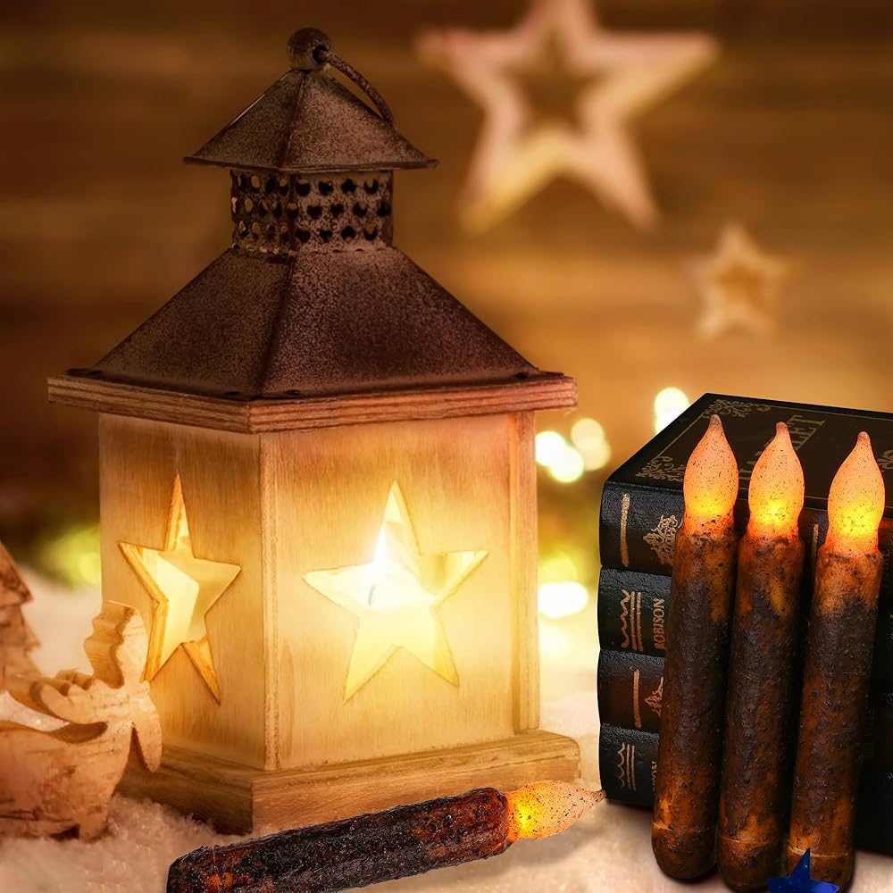 • 【شمعة ذات تصميم عتيق】 مصنوعة يدويًا من خلال غمس الشمع بأسلوب قديم. تشطيب السطح كلاسيكي والمظهر قديم وجديد. إنها تقطر مثل شمعة حقيقية، وتبدو سحرية.