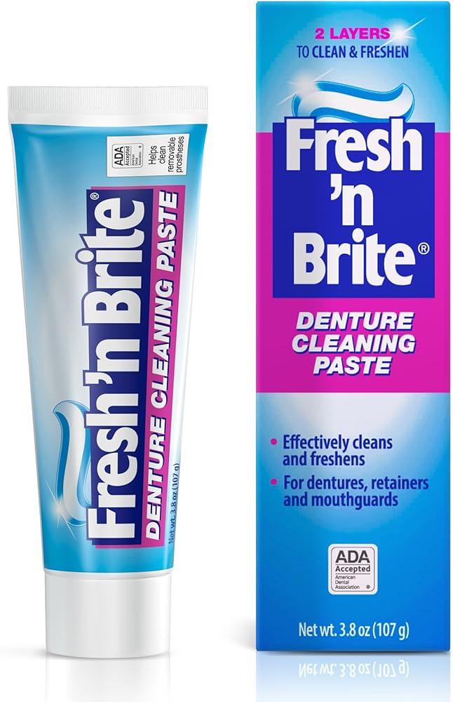 يجمع Stim-U-Dent بين قوة التنظيف للصق وقوة تعطير الفم من جل صغير. يزيل بقع البقع الناتجة عن القهوة والشاي والنبيذ والتبغ. يحتوي على طبقتين من أجل النضارة واللمعان. معجون أسنان فريش ان برايت دينتور من شركة آداي على أساس العثور على المنتج فعال للاستخدام في تنظيف الكثافات القابلة للإزالة، عند استخدامه كما هو موضح.