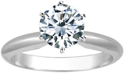 1 Carat Round Cut Diamond Solitaire Engagement Ring 14K White Gold 6 Prong (K, SI2-I1, 1 c.t.w) Very Good Cut