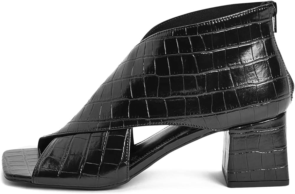 CHIC SANDAL ANKLE BOOTIES: 2 inch mid chunky heel ankle boots cut-out give you a comfortable walking experience, and the simple and fashionable design gives you a stunning OOTD. Side cut out booties square open toe to keep your feet from getting sweaty. The zipper in the back makes it easy for you to slip on and off, making it easier to start your day on the go.