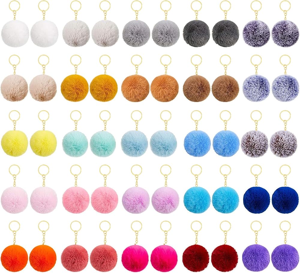 【Value 50-Pack Pom Pom Keychain Bulk】This set includes 50 vibrant pompom key chains in multiple bright colors, covering pastels, neutrals, and vivid hues to match different styles. The ample quantity meets daily use, decoration, and gifting needs—you can keep several for yourself and share the rest with friends. Each piece is lightweight and portable, making it a cost-effective choice for adding charm to accessories