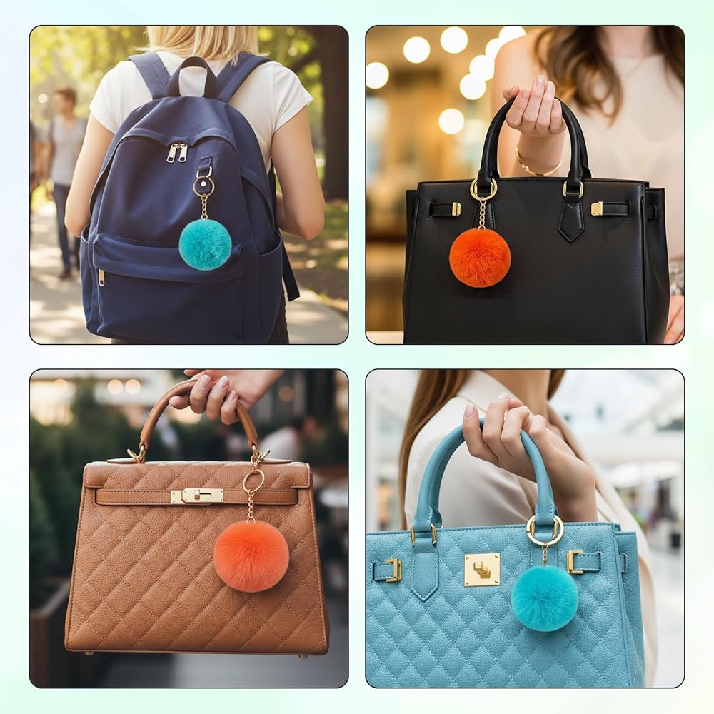 【Versatile Puff Ball Keychain】These pom poms for keychains work perfectly as key accessories, bag pendants, or even hair decorations. Attach them to handbags, backpacks, purses, or car keys to instantly add a cute, playful touch. suitable for daily commutes, shopping trips, or parties