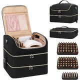 تصميم من ثلاث طبقات: تنقسم حقيبة منظم طلاء الأظافر إلى ثلاث طبقات علوية ووسطى وسفلية. الطبقة السفلية ذات تصميم قابل للإزالة ويمكن استخدامها بشكل منفصل لراحتك. وظيفة تخزين التقسيم، والتي يمكن استخدامها كمنظم لعلبة طلاء الأظافر، أو حقيبة مكياج، أو حقيبة سفر، إلخ.