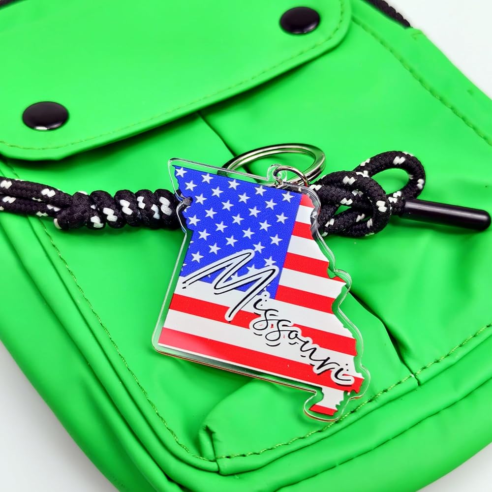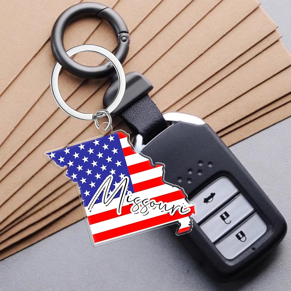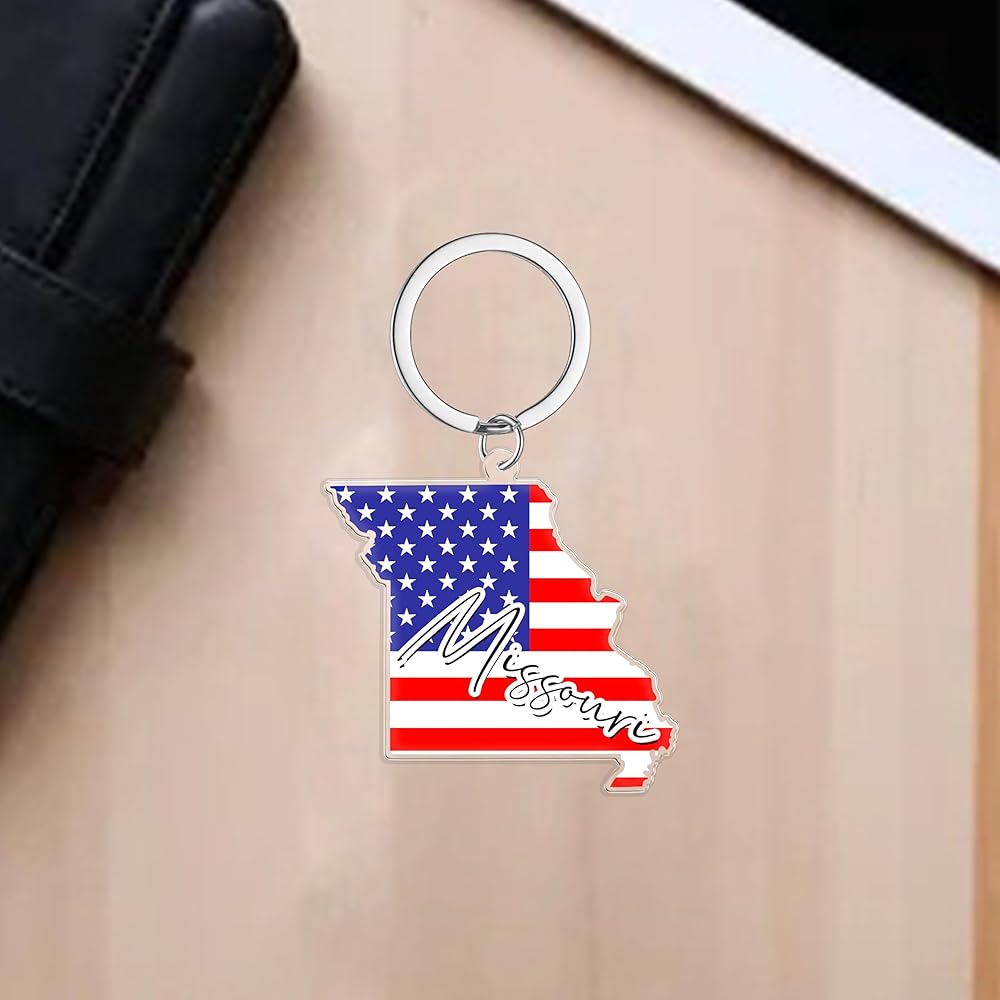 سلسلة مفاتيح تذكارية من ميسوري مع حلقة مفاتيح - سلسلة مفاتيح العلم الأمريكي، حامل مفاتيح للهدايا، الهدايا التذكارية من الولايات المتحدة الأمريكية، بقعة M