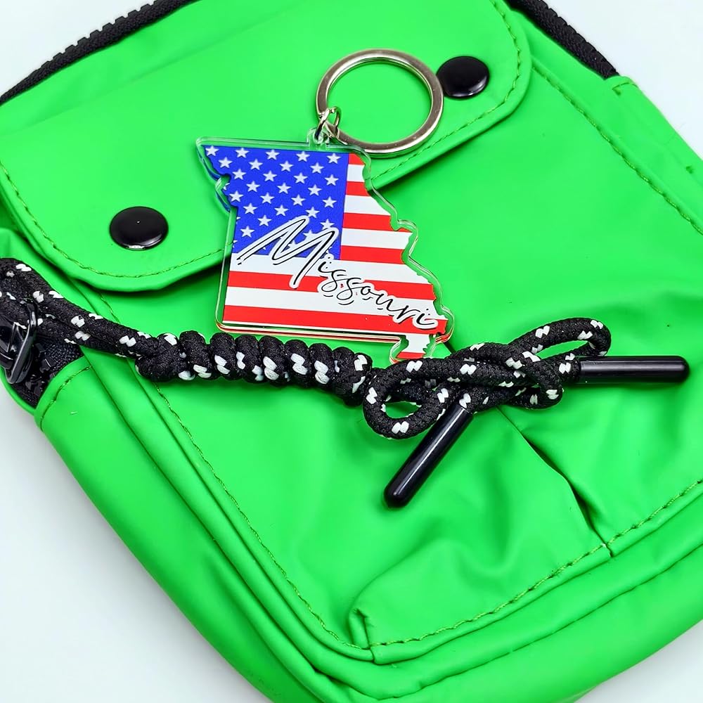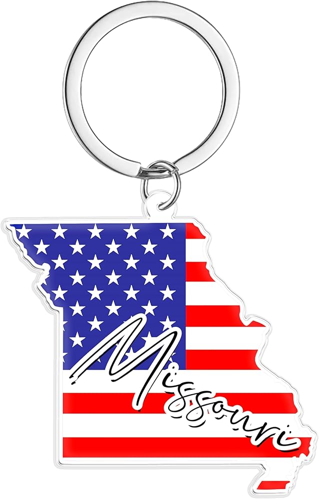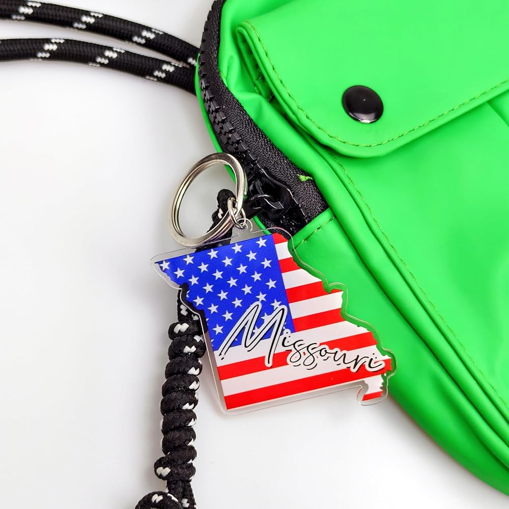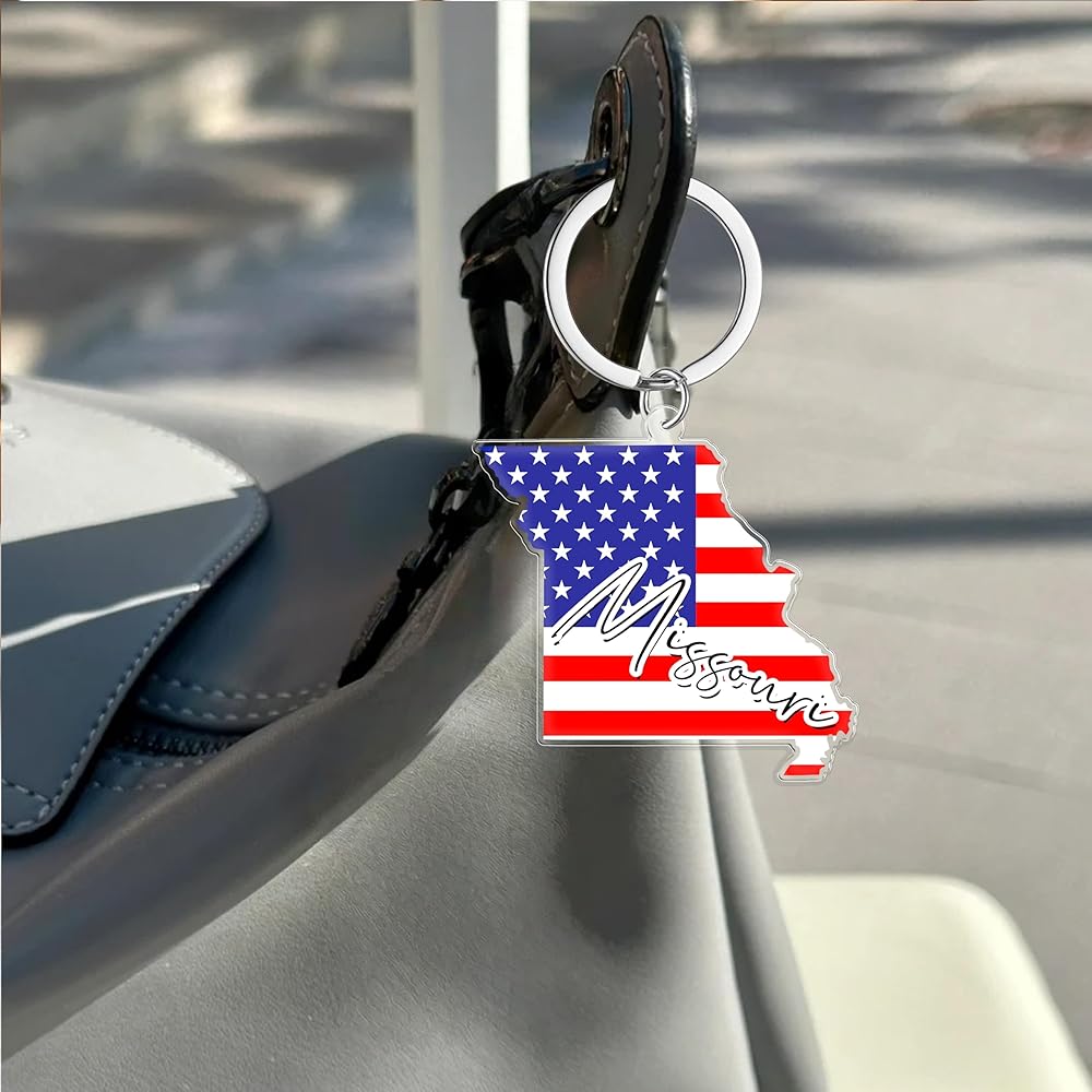 سلسلة مفاتيح تذكارية من ميسوري مع حلقة مفاتيح - سلسلة مفاتيح العلم الأمريكي، حامل مفاتيح للهدايا، الهدايا التذكارية من الولايات المتحدة الأمريكية، بقعة M