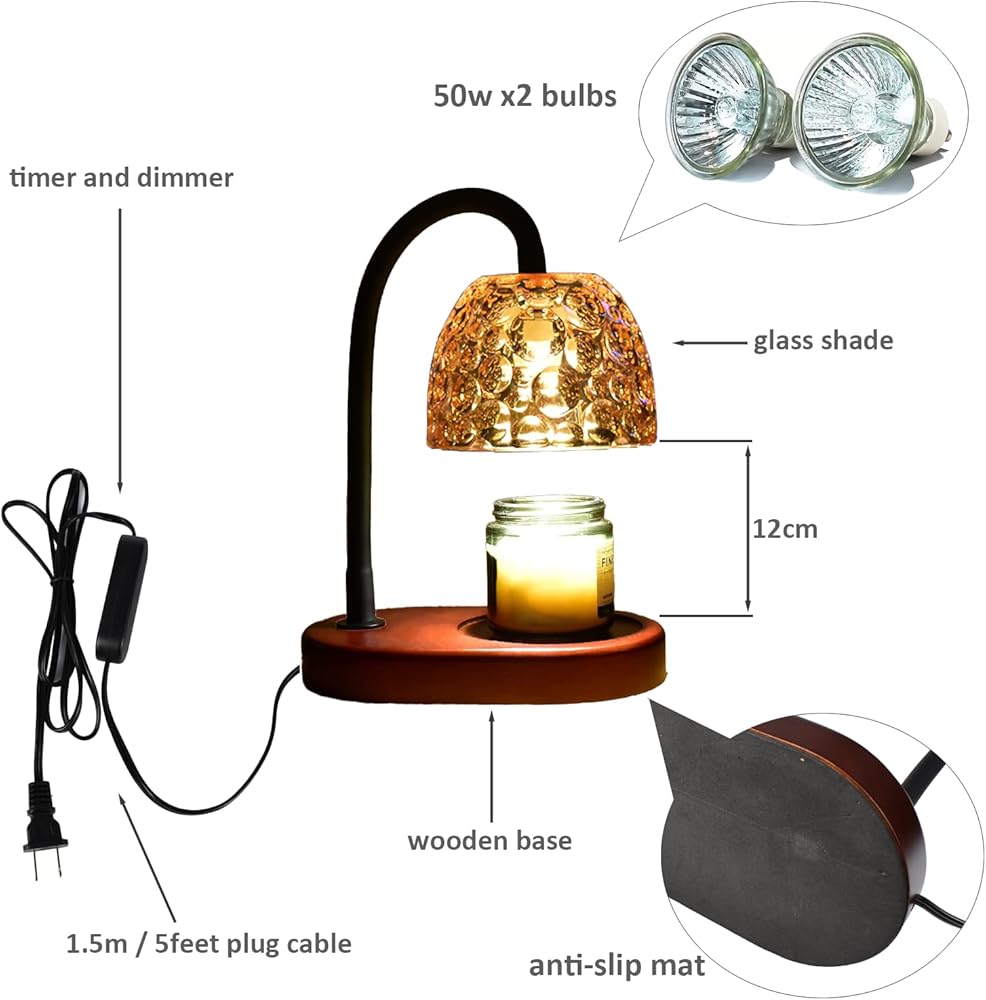 مصباح تسخين الشمعة: هو مصباح يمكنه توزيع الحرارة لإذابة الشمع بدون لهب. إنه بديل أكثر أمانًا لحرق الشموع. مع هذا المصباح، يمكن لعشاق الشموع الاستمتاع بالروائح مع جودة هواء أفضل