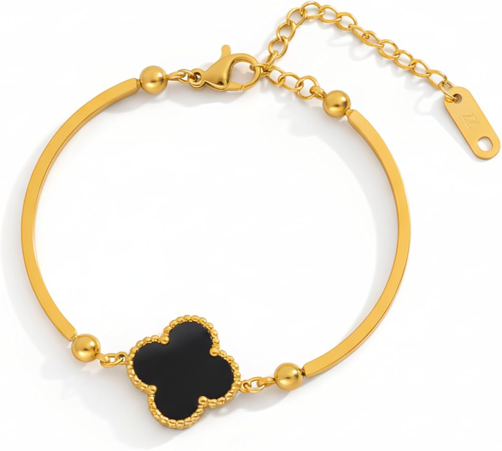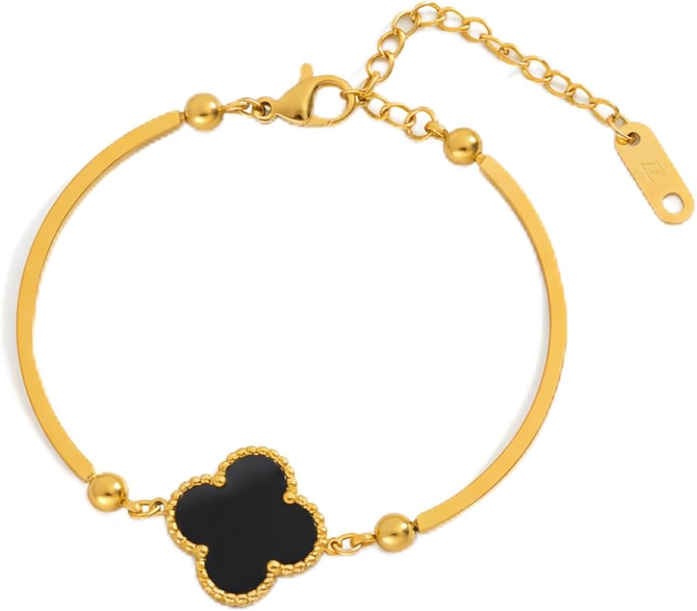 تصميم أنيق: يتميز بسحر البرسيم ذو الأربع أوراق الخالدة، وهو رمز كلاسيكي للحظ السعيد. يوفر طلاء الذهب عيار 18 قيراطًا على الفولاذ المقاوم للصدأ لمعانًا فاخرًا يرفع من مستوى أي ملابس.