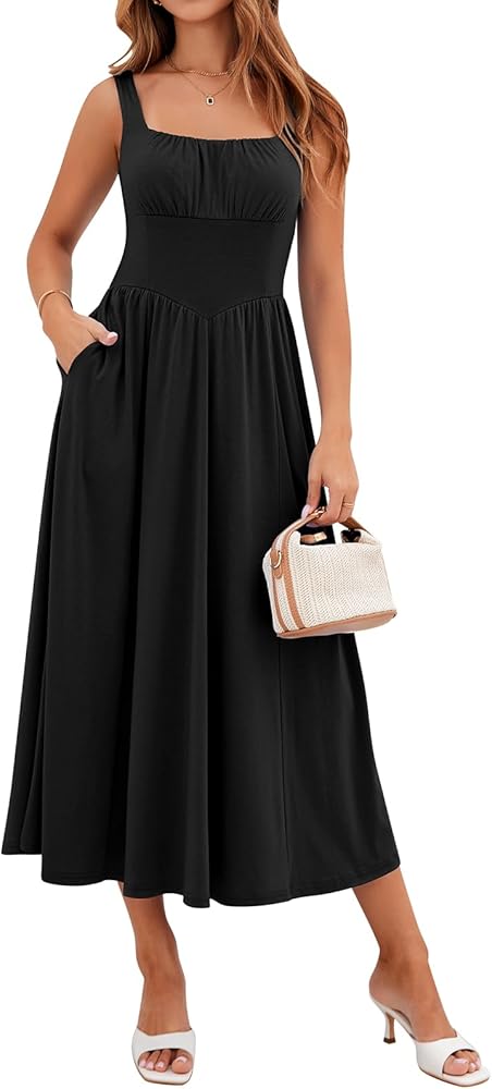 This is a backless square neck dress that can be worn in both spring and summer 2026, featuring delicate ruching across the bust that beautifully shapes the figure. The dress comes with two practical side pockets for carrying your phone and keys when you're out. Made from lightweight, stretchy fabric that resists wrinkles, it ensures all-day comfort.