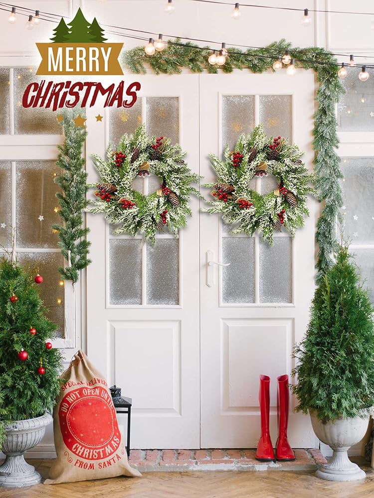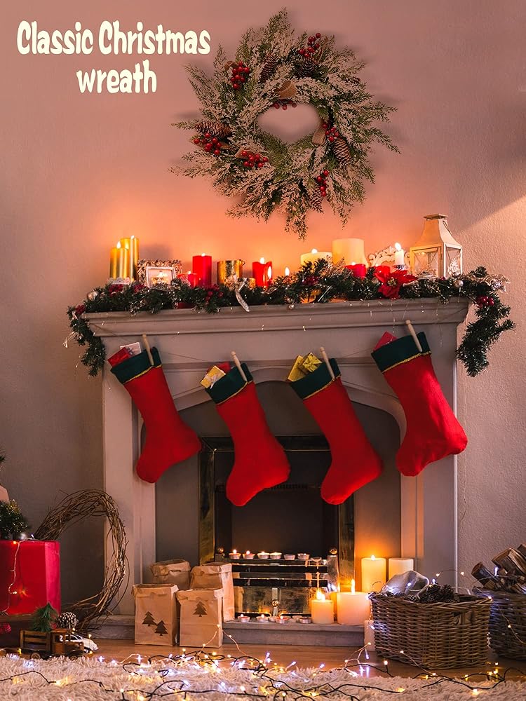 • زينة إكليل الشتاء الرائعة للمواقد، والأرفف، والأبواب، والجدار، وطاولة الطعام، المداخل الأمامية، النوافذ، الفوز