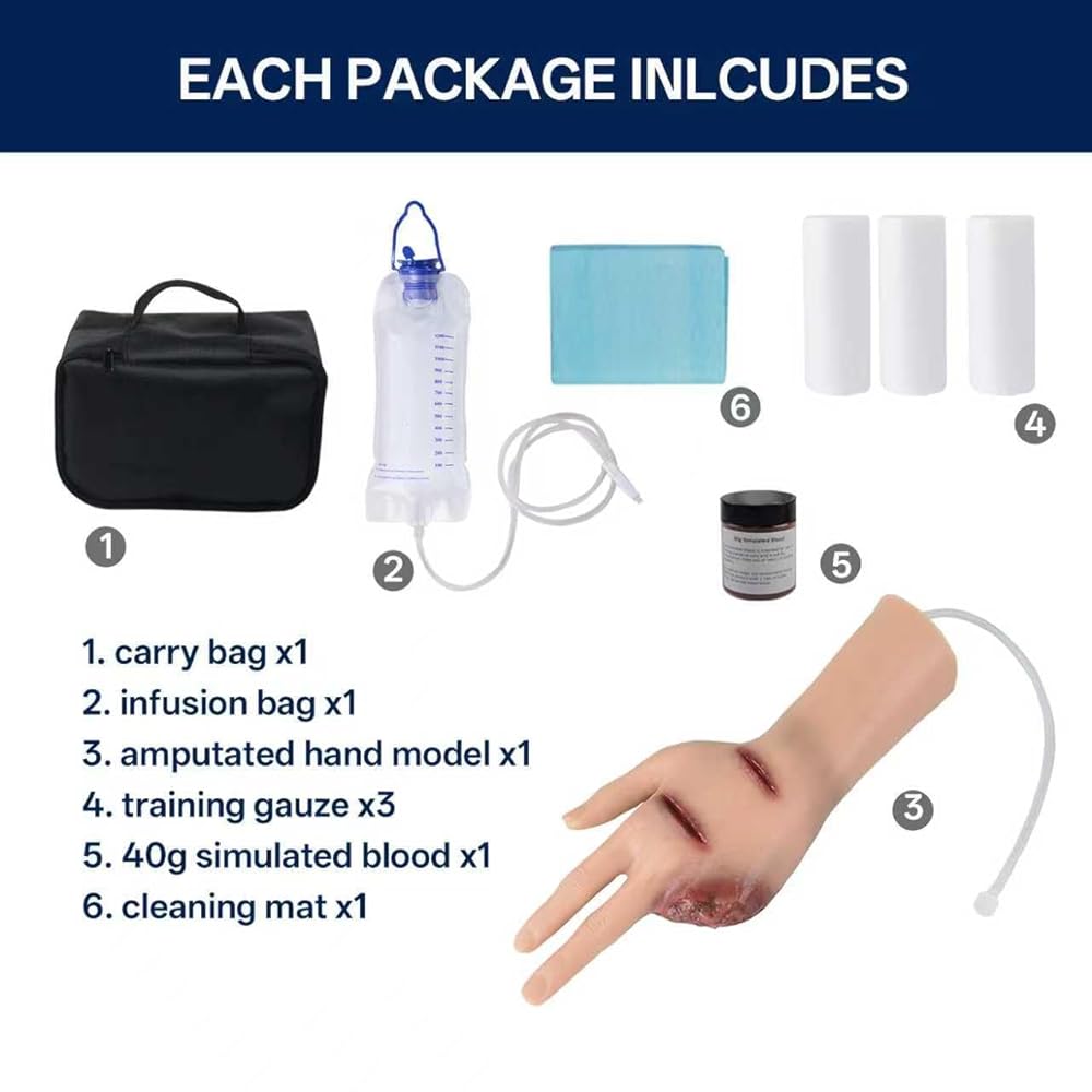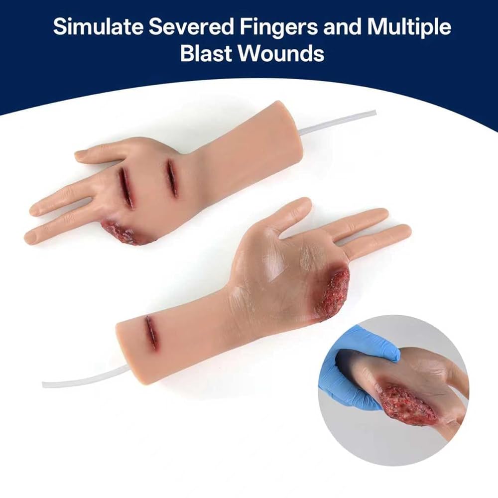 Professional Training: Amputated Finger Hand Model for Wound Packing – Realistic Silicone Trainer with Blood Simulation Bag. Perfect for TCCC (Tactical Combat Casualty Care), EMT, Paramedic, Nursing, and First Aid training.