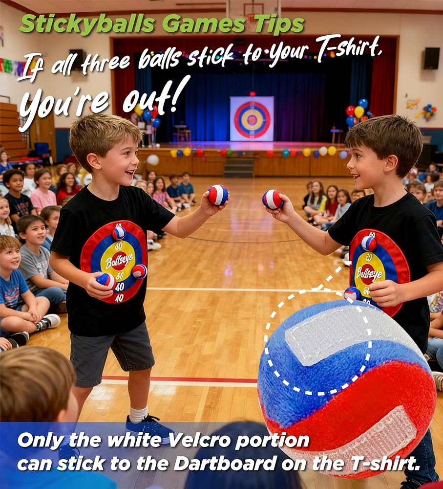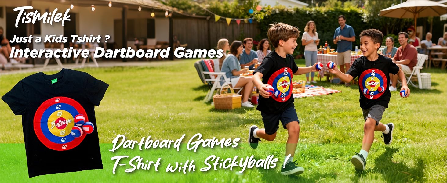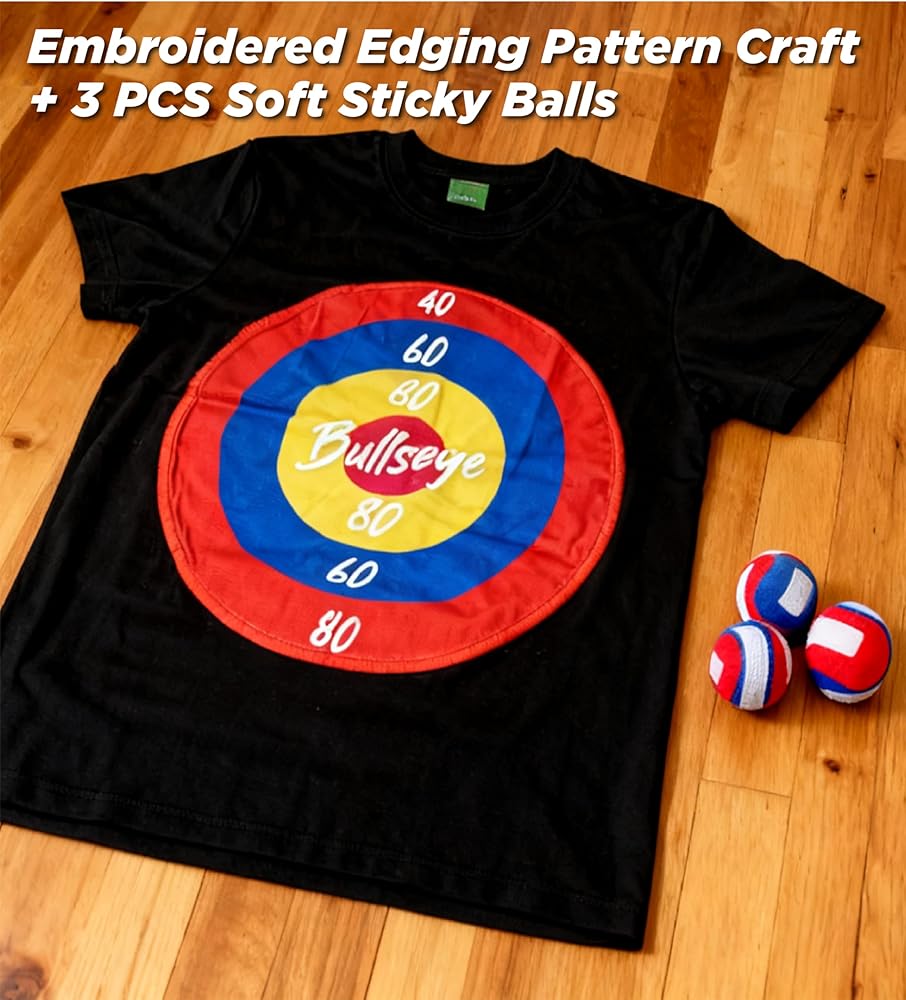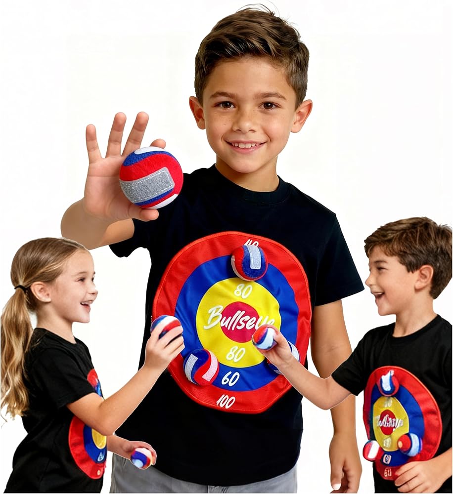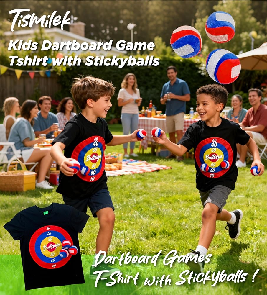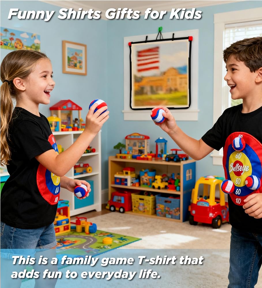 قمصان ممتعة للأطفال - قميص للأطفال مع لوحة رمي السهام التفاعلية هذه! تأتي مع 3 كرات فيلكرو آمنة مصممة خصيصًا، مما يقضي على مخاطر السهام التقليدية. توفر قمصان الألعاب التفاعلية هذه راحة البال للآباء والإثارة التي لا نهاية لها للأولاد والبنات