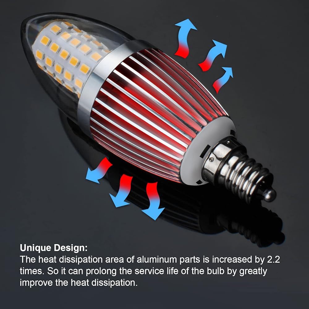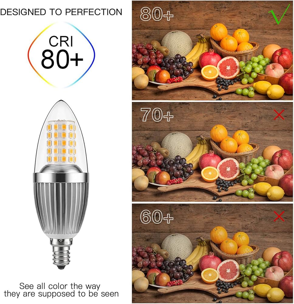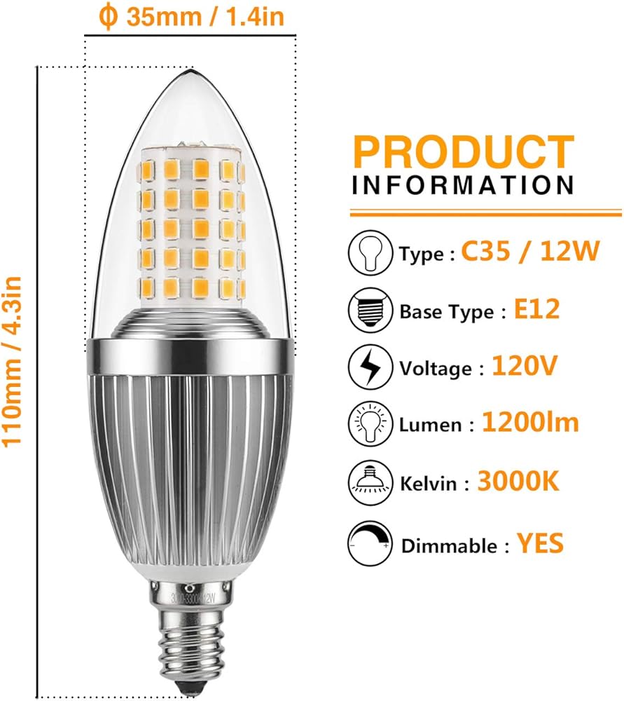 لمبة شمعدان LED، غير قابلة للتعتيم، ما يعادل 100 وات، مصابيح شموع LED 12 وات، أبيض دافئ 3000 ك، 120 فولت، 1200 لومن، قاعدة E12، مصابيح ثريا، شكل طوربيد (4 عبوات)