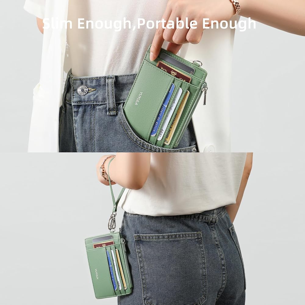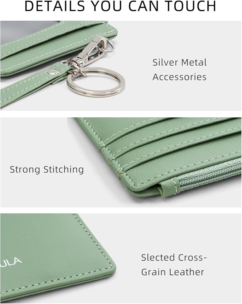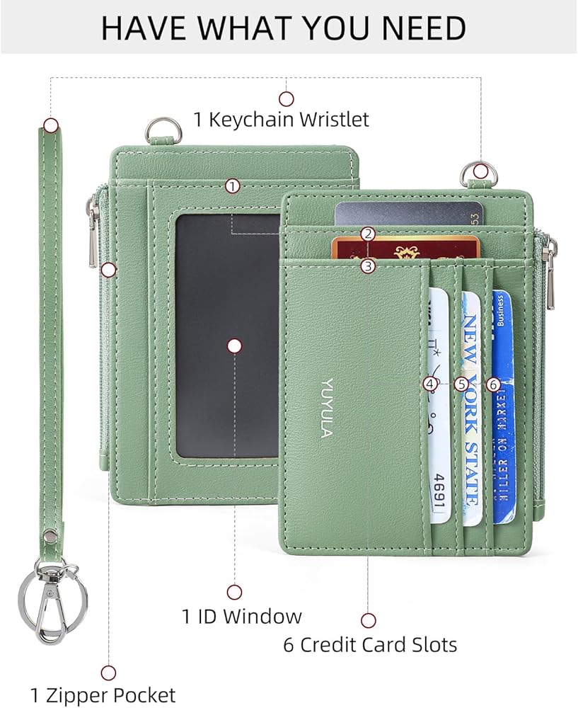 حجم صغير: 3.5 بوصة × 5.1 بوصة × 0.4 بوصة، يناسب جيبك أو حقيبة يدك بشكل مثالي. يحتوي على 6 فتحات للبطاقات، ونافذة واحدة لبطاقة الهوية، وجيب واحد بسحاب.