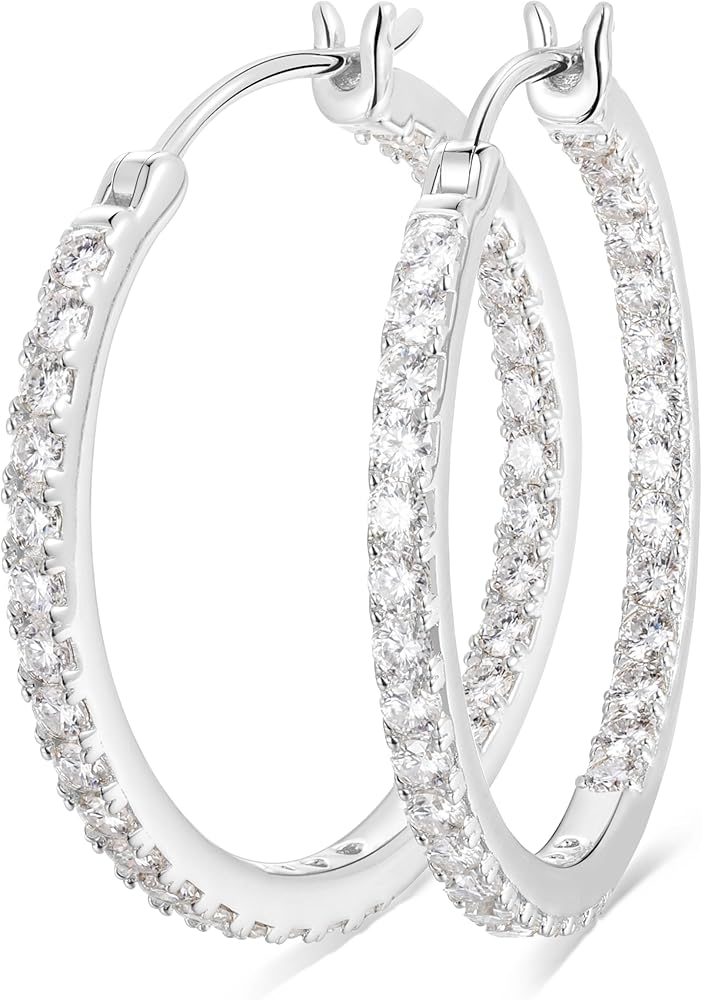 Silver hoop earrings with diamonds hypoallergenic diamond earrings for women.