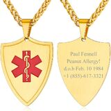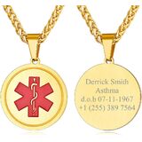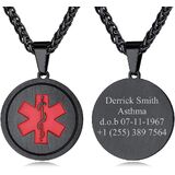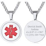 قلادة تنبيه طبية مخصصة للنساء/الرجال: قلادة هوية طبية للطوارئ مخصصة تتميز برمز Life Star لتنبيه المستجيبين الأوائل على الفور. نقش المعلومات الصحية المهمة بالليزر بما في ذلك فصيلة الدم وحساسية الأدوية والتاريخ الطبي وجهات الاتصال في حالات الطوارئ. سلسلة قابلة للتعديل مقاس 22 بوصة مع امتداد 2 بوصة تناسب معظم أنواع الجسم.