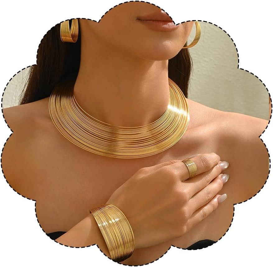 - 5. أطقم المجوهرات الأفريقية الذهبية: هذه المجموعة مناسبة للنساء اللاتي يقدرن مجوهرات البانك، حيث تجمع بين الأناقة والحداثة في مجموعة واحدة مذهلة.