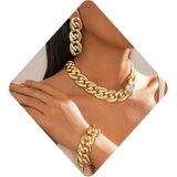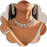 - 3. قلادة جريئة: ارفعي من أناقتك مع هذه القلادة الذهبية السميكة التي تتميز بتصميمها الهندسي الخطي، مما يجعلها إكسسوارًا ملفتًا للنظر لكل مصممي الأزياء.