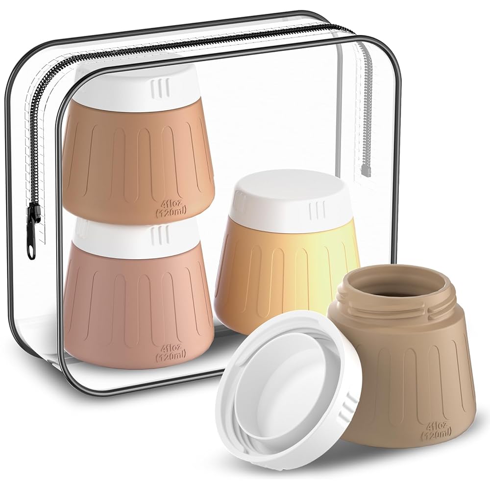 مجموعة سفر مريحة: الحجم الصغير للبرطمانات يجعلها سهلة الحمل في الجيوب وحقائب اليد وحقائب الظهر. 4 عبوات بألوان مختلفة لسهولة التعرف على المحتويات والحفاظ على أدوات النظافة الخاصة بك منظمة ويمكن الوصول إليها.