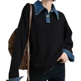 المميزات: سترات كبيرة الحجم للسيدات مصممة بياقة بولو من الدنيم، وزرين معدنيين، وأكمام طويلة، ولون ثابت، ونمط كاجوال، والسترات الخريفية بمقاس واحد، هذه السترات النسائية مناسبة لأجسام النساء ويمكن شراؤها بثقة.