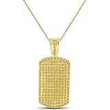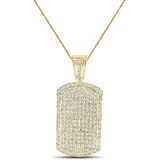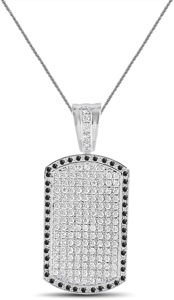 Charm Length : 2.50 Inches ( Including Bail ) Charm Width : 1.25 Inches Charm Thickness: 6 mm Main Stone : Simulated Diamond Total Stone Carat Weight (CWT) : 4.40 Cwt. Stone Setting : Micro Pave/Prong Stone Shape : Round Cut Stone Color : White Chain Style : Rope Chain Length : 24 Inch Chain Width : 2 mm Gender : Men's/Women's Total Weight (Charm + Chain ) : 30 + Grams Metal - 14k Gold Over Solid Bronze