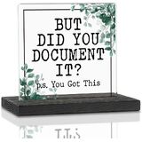 Inspirational Decorative Sign for Work Gifts. "But Did You Document It? p.s. you got this", This is a high-definition color printing clear desk decorative sign thank you gifts Black vintage wooden base and acrylic creates an exquisite tabletop decor plaque, fine workmanship, not easy to deform or break, easy to use.