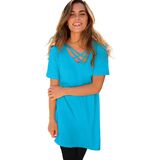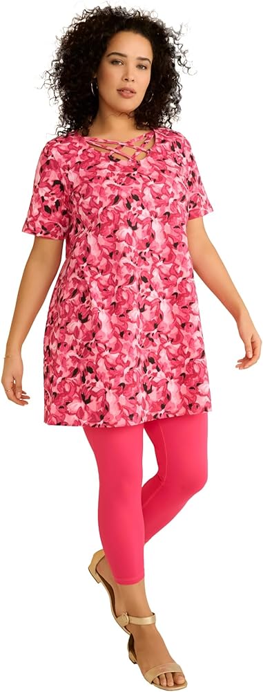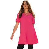 Cross our hearts, we know this short-sleeved tunic will be your next favorite. Cut for a comfortable, relaxed fit, it's detailed with a criss-cross lattice neckline and made from breathable fabric that layers easily, making it perfect for year-round wear. Part of our Ultimate Collection and available in a range of styles, our bestselling tunics come in the just-right lengths you love. Each fit is designed to glide over curves comfortably and is made from a soft cotton knit that wears and washes beautifully. 34" tunic length br> Cotton br> 100% cotton products are subject to shrinkage in the wash. To maintain your intended fit, purchase one size larger br> Machine wash cold, wash colors separately, tumble dry low, low iron br> Imported