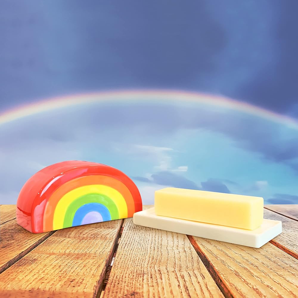 تصميم غريب الأطوار: طبق زبدة قوس قزح هذا مليء بالحب واللون يجلب السعادة والمظهر والشعور الفريدين لمطبخك، ويكمل أي ديكور.