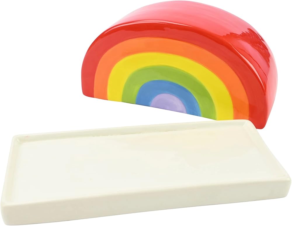 ابدأ يومك مع طبق الزبدة السعيد والملون هذا من بوسطن ويرهاوس. أضف لمسة من السحر إلى طاولة المطبخ أو سطح الطاولة مع تصميم قوس قزح المشرق والمشمس. يعد طبق الزبدة المصنوع من الخزف المتين والآمن للغسل في غسالة الصحون إضافة مثالية لمنزلك أو هدية بسيطة ولكنها مدروسة لأي شخص! ابحث عن المزيد من الأفكار الإبداعية لمطبخك ومنزلك وحياتك من بوستون ويرهاوس.
