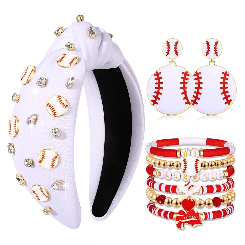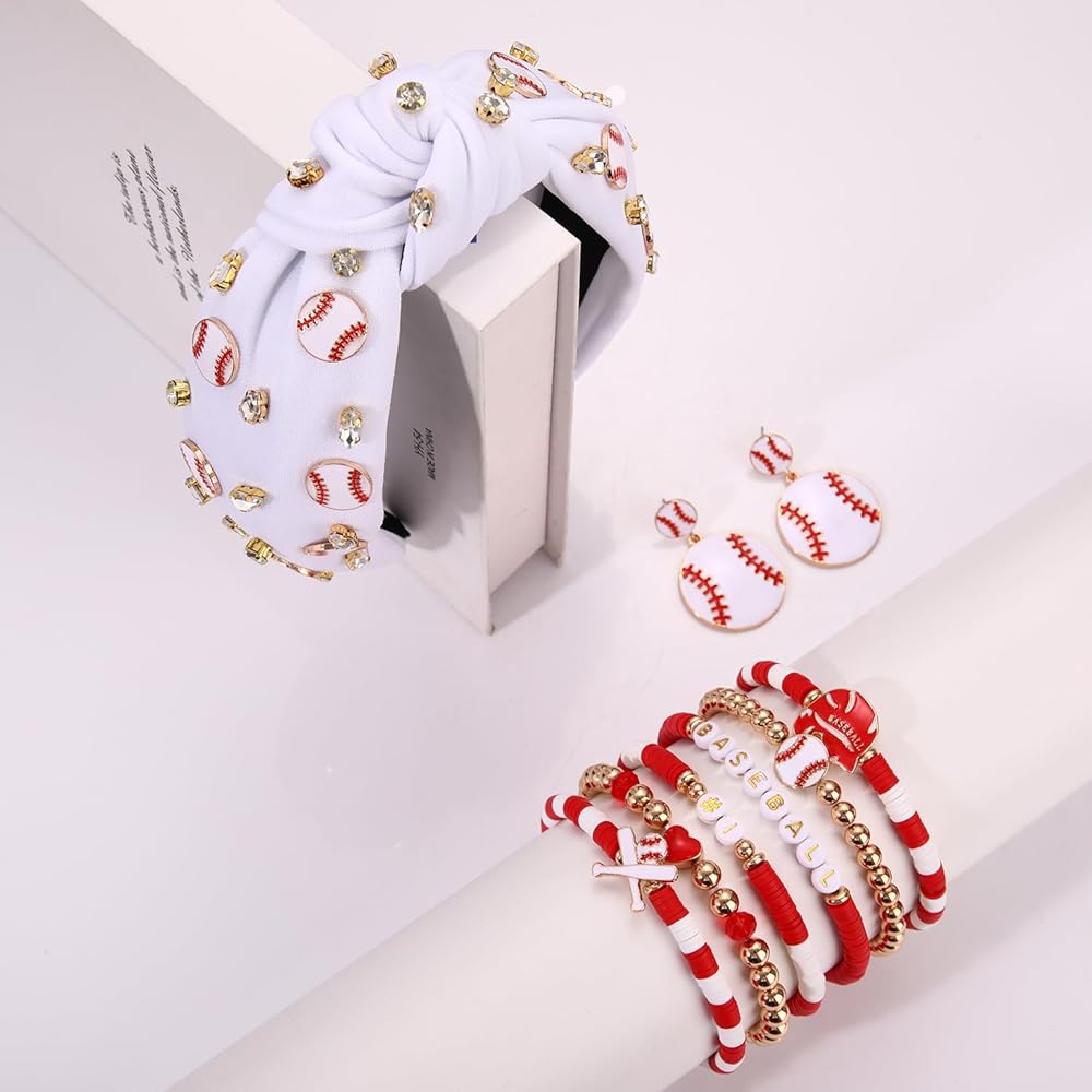 • ★ Game Day Accessories: Time to play ball! Calling all Sports lovers & Sports mamas!!! Cheer on your favorite team with this sports jewelry accessories. Including a top knot jeweled headband, 6pcs heishi beaded bracelets and a pair of sport earrings. Making it the perfect way to accessories your game day outfits when supporting your favorite team or player! Suitable for a day at the stadium, tailgate, watch party or any sports events!
