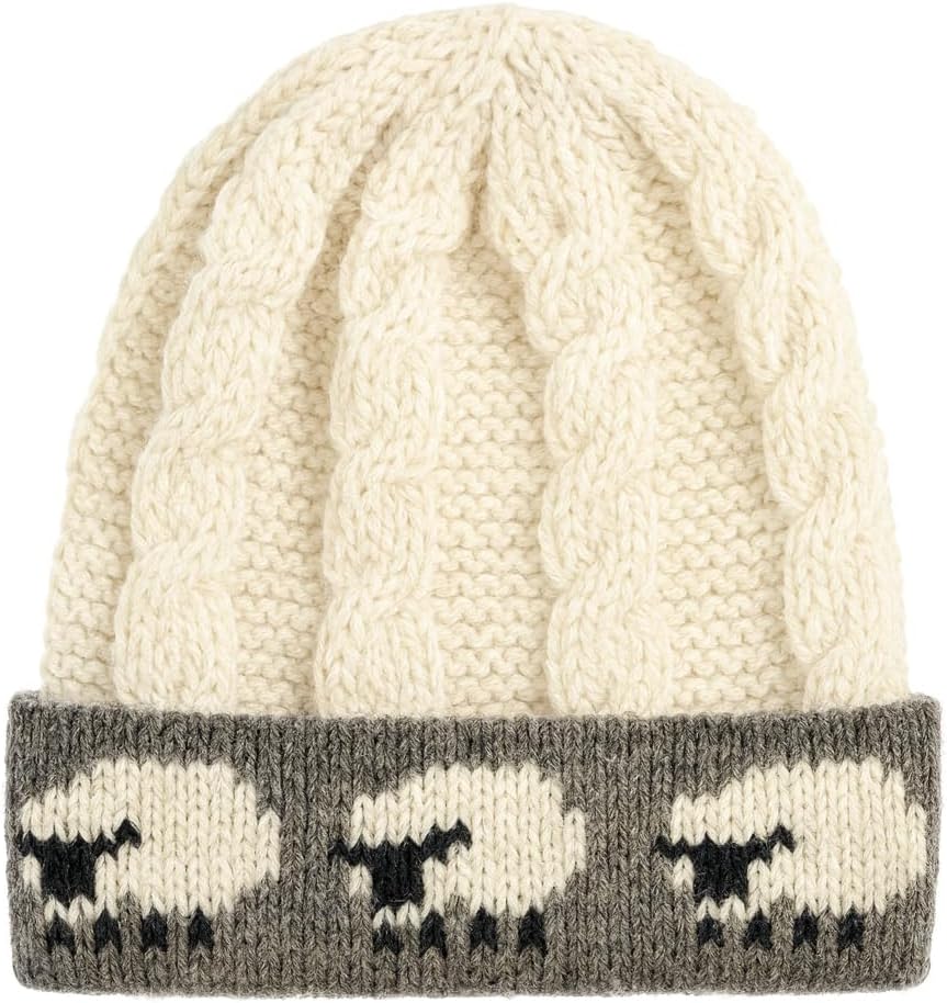 قبعة شتوية للسيدات من MYSASI Aran Scottish Heritage، صوف بنسبة 100%، لمسة نهائية يدوية، تصميم خروف،